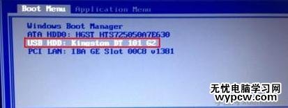 大家看下圖,將光標移動選擇到的地方顯示“USB HDD:Kingston DT 101 G2”(小編寫這篇教程的時候使用的是u盤)所以,當我們按下快速熱鍵F12的時候顯示出來的選項中就包含有小編用u大俠制作好啟動盤的u盤。