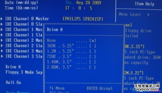 如今的電腦基本都不用軟驅了,但是主板在設計時候還是支持軟驅,這樣在windows系統上總是多一個軟驅盤,實際上根本用不著,所以就可以直接在BIOS里頭關掉,首先選擇Standard Bios features,然后有個DRIVEA選項,移動到該項上回車,選擇NONE或DISABLE即可關掉。