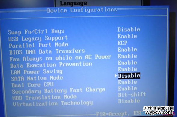 注:有些型號的HP筆記本電腦進BIOS需要按F2鍵。具體在筆記本電腦開機時屏幕下方會有提示的,就是“Press F10 to enter BIOS setup”這段英文里的這個F10。