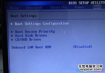從上到下依次是:Boot Settings Configuration(啟動選項設定)、Boot Device Priority(啟動順序設置)、Hard Disk Drives(硬盤驅動器順序)、CD/DVD Drives(光盤驅動器順序)、onboard lan boot rom(板載網絡啟動選項)。