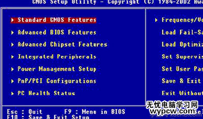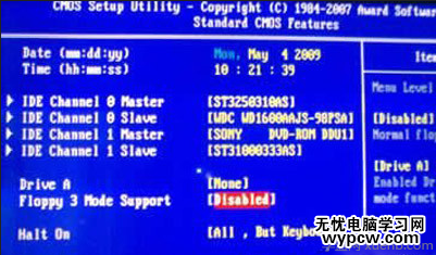 某些比較舊的主板默認設置也會開啟軟驅,這時進入BIOS后請選擇第一項“Standard CMOS Features”。