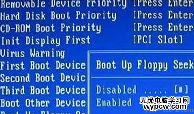 將“Boot Up Floppy Seek”設置為“Disabled”。