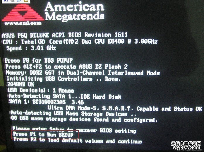 從上圖,首先,根據(jù)前面例子提示,我們看出“press F1 to RUN SETUP”是進(jìn)入BIOS的提示。