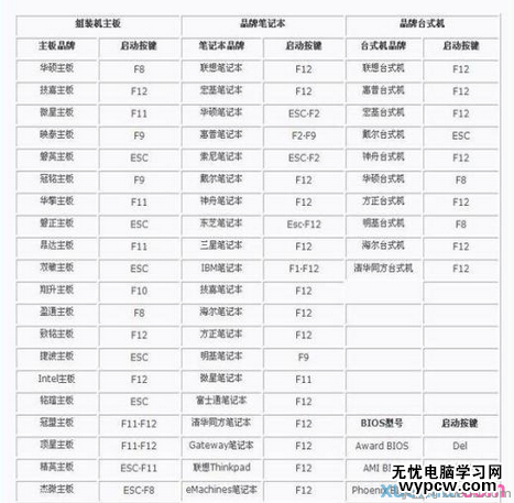 (2)U盤啟動可以讓我們在不使用其他磁盤介質的情況下,讓U盤進行臨時啟動,不同品牌的電腦主板BIOS啟動的快捷方法也不同,幾種不同品牌常用啟動熱鍵如下圖所示;