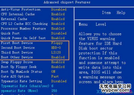 移動 ↑ ↓ ← → 光標鍵可以進行選擇,一般設置開機啟動順序的項目就在“Advanced BIOS Features ”這個選項中(右圖紅框)。