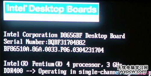 Intel原廠主板開機自檢測界面,不同于AMI或AWARD BIOS界面,其自檢測界面,顯示主板型號及BIOS日期