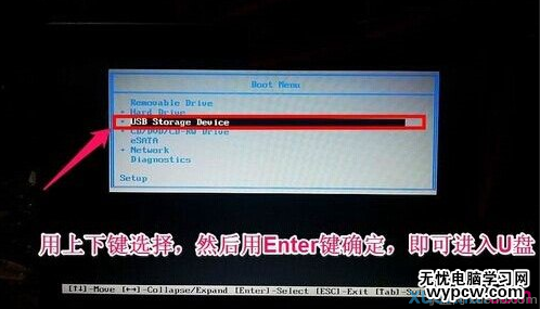 將制作好啟動盤的U盤插入電腦USB接口,然后開機或者重啟戴爾筆記本電腦,當開機進入標志畫面時,立即按鍵盤上的“F12鍵”即可進入戴爾筆記本Boote Menu(啟動項菜單),之后,這個里面就可以直接選擇USB Storage Device(有的直接顯示U盤名稱)設備,之后即可從U盤啟動了。