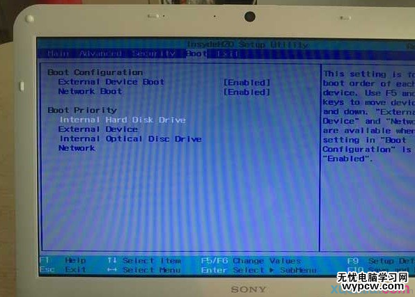 ps:以上設置的是將索尼筆記本設置為從U盤啟動,如果完成系統安裝后,想要重啟設置為從硬盤啟動,方法也很簡單,只要選中Boot Priority下方的Internal Hard Disk Drivce項目,然后按F5鍵,將其移動到最上面即可,如下圖所示: