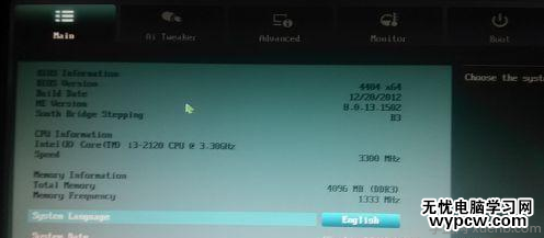 3、進入bios設置界面,首先看到的是main(概要)選項卡,默認語言是English,當然也可以手動選擇為簡體中文