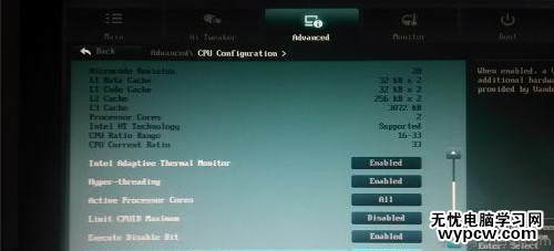這款CPU支持VT-x,但這款主板卻沒有這個選項,至少目前4404版本的BIOS設置中沒有。