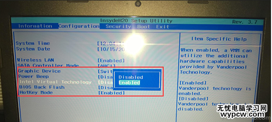 二、如果CPU支持,我們就可以進入bios開啟了。具體步驟是重啟電腦,然后按Del鍵進bios,以我自己的電腦bios為例。首先切到“Configuration”選項,然后找到“Inter Virtual Technology”項,將選項值改為“Enabled”即可。如圖。