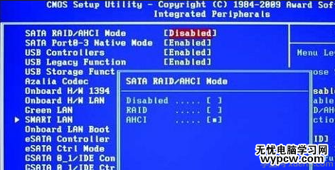 步驟三:重啟電腦之后,進(jìn)入BIOS,在“Integrated Peripherals”頁面中,將“SATA RAID/AHCI Mode”更改為“AHCI”(不同BIOS選項名稱會有細(xì)微差別)。