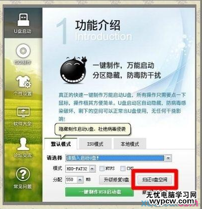 如果不需要這個u盤PE微系統啟動工具了,還可以點擊歸還u盤的空間。