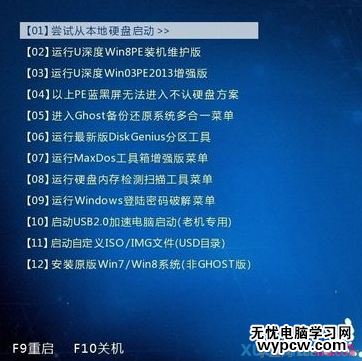 3、這時電腦會引導u盤啟動,自動進入到u盤啟動中的主菜單界面,如下圖所示為u深度u盤啟動的主菜單畫面圖: