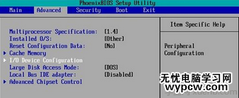 3、按鍵盤的光標的“→”,轉到Advanced選項卡,選擇I/O Device Configuration