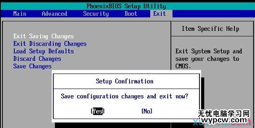 6、調整完成了,我們需要保存更改并重啟。按鍵盤的光標的“→”,轉到Exit選項卡,選擇第一項“Exit Saving Changes”,然后"Yes"確定,虛擬機馬上就會重啟了。檢驗一下效果吧。