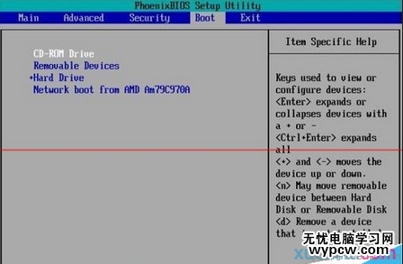 白色文字就是所選項,按方向鍵“上”或“下”選擇,按“+”或“-”調(diào)整順序。不同主板選擇的方式也不同,看畫面最下面的提示。CD-ROM代表光驅(qū)啟動,Removable代表U盤啟動,Hard代表硬盤啟動?a href=http://www.xuenb.com/web/aspx/ target=_blank class="infotextkey">.network代表網(wǎng)卡啟動。