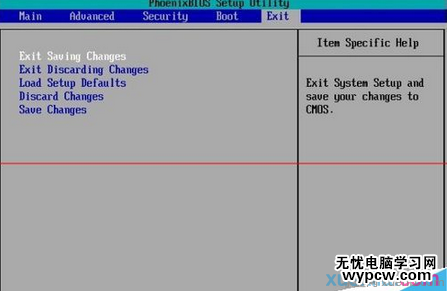 設(shè)置好啟動順序后,按右方向鍵,選到“Exit”項。選擇“Exit Saving Changes”項,按回車。對CMOS進行更改后需要保存,設(shè)置才會生效。