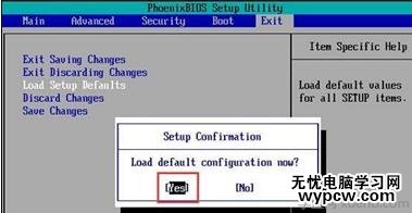 3、在彈出的窗口中,提示是否加載默認設置,選擇“yes”,按回車鍵確定。
