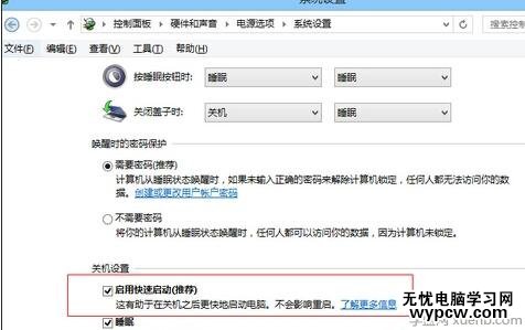 5.往下拉動頁面,就會發現Win8的快速啟動功能,你可以選擇開啟或者關閉它(強烈建議開啟)。
