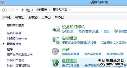 2.進入“硬件和聲音”后再進入“電源選項”;