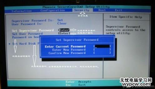 如何消除密碼?進入設置密碼的菜單,把兩個密碼重新設置為空(直接按回車),比如在Set Supervisor PassWord 上按回車,提示輸入舊密碼、回車、再回即可。