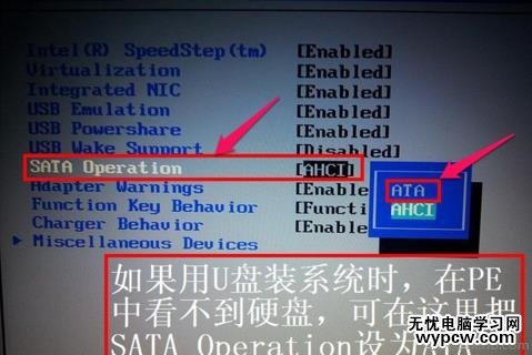 8,在打開的小窗口中選擇ATA這一項(xiàng),然后按Enter鍵確定,原因是,尤于一些老式的PE系統(tǒng)不兼容ACHI模式,所以要啟動(dòng)傳統(tǒng)的ATA模式,如果是一些比較新的PE系統(tǒng),它們都能夠兼容ACHI模式。