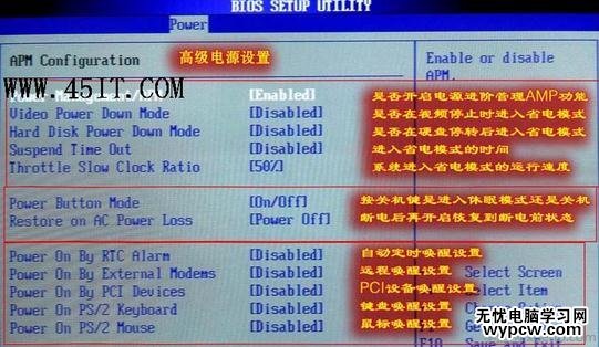 前面四個沒有什么好講,因為主板品牌不同,所以可能有些用戶沒有上面的選項,主要有APM Configuration(高級電源設置)和Hardware Monitor(系統監控)兩個選項。//本文來自www.jb51.net