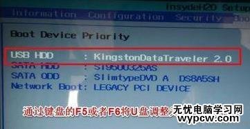 我們要通過鍵盤的F5或者F6將我們的U盤調整為第一啟動項目。