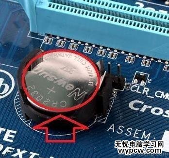 7、如果進不去操作系統,那么只有使用扣電池,因為電腦關機之后,主板上的紐扣電池還會繼續計時工作,如果將其拆除(數十秒),主板訊息就會因為斷電而清零,從而清除用戶自設的密碼,還原到BIOS的出廠默認值(無密碼),然后再按上去即可。