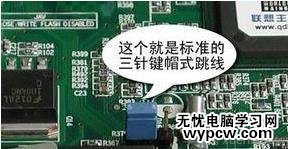 8、當然,有些主板的計時電池是摳不出來的(導線焊接在電池上的),此時可以斷電,嘗試跳線(短路二、三線)清零(因為版本不同,可以按照說明書操作)。