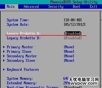 2、BIOS的主界面下,Legacy DisKetta A一項,原來是1.44MB IN的,回車,改為"Disable".因為軟驅淘汰了,更不會有人在虛擬機里用到軟驅,禁用掉可以加快開機速度。
