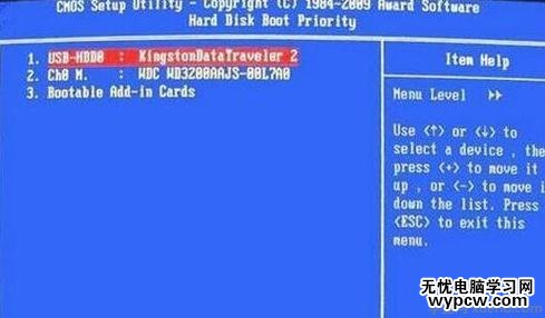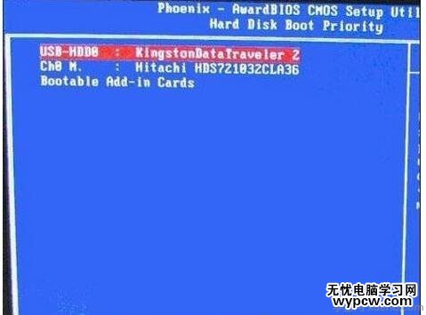 進入到硬盤啟動優先級(Hard Disk Boot Priority)界面后。需要使用小鍵盤上的加減符號(+、-)來選擇與移動設備,要將U盤選擇在最上面。完成前面的步驟后按住ESC鍵退出,便會回到圖2-1的設置界面