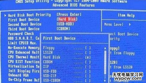 在第一啟動設備(First Boot Device)的界面里,有U盤的USB-ZIP、USB-HDD之類的相關選項,我們可以選擇“Hard Disk”,也可以選擇“USB-HDD”之類的選項,來啟動該電腦。