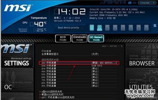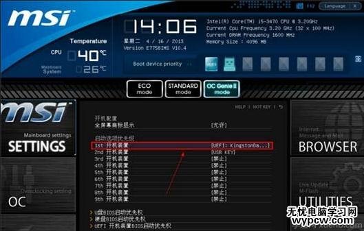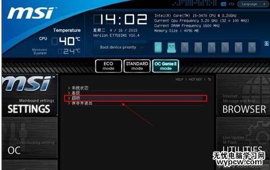 微星主板一鍵啟動u盤的快捷鍵是:F11