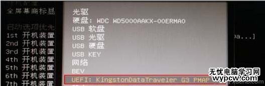 6.在子菜單中選擇u盤并回車將其設為第一啟動項。(這里小編用的是kingston的u盤,如下圖)