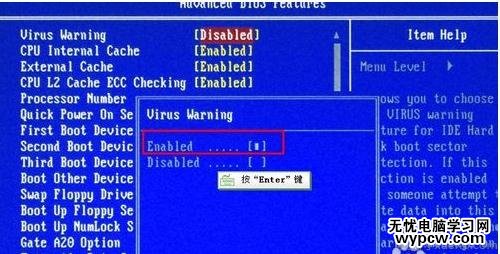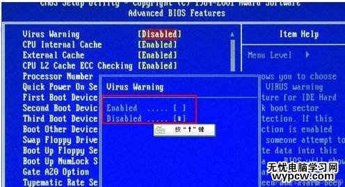 操作方法:以Virus Warning:病毒報警選項設置為例。