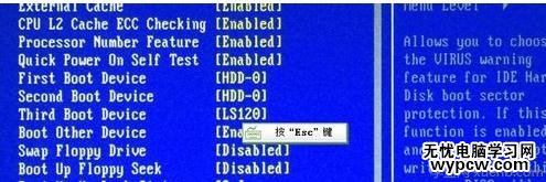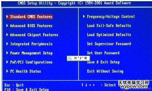 在BOIS界面中,方向鍵選擇,回車鍵確定,ESC鍵返回。