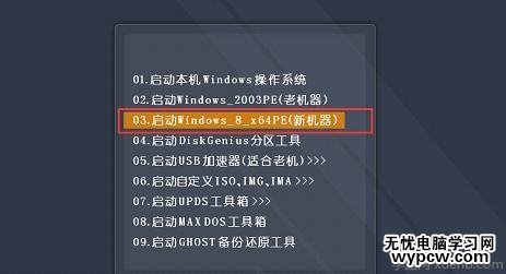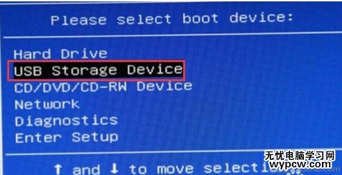 3接著就按鍵盤上的方向鍵移動光標,選擇U盤所在的選項,一般是帶有USB字樣的選項。按回車鍵即可進入到U盤PE的主菜單界面!