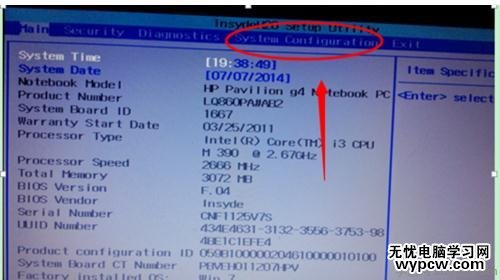 1等待片刻之后,進入BIOS界面找到“system configuration”系統設置選項