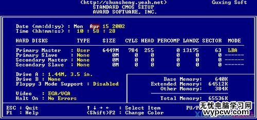 這是BIOS的最基本設(shè)置,用來確定故障范圍