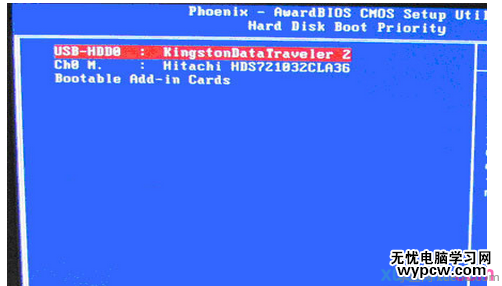 3、進入Hard Disk Boot Priority(硬盤啟動優先級)界面后,選擇U盤為第一啟動盤,如圖所示: