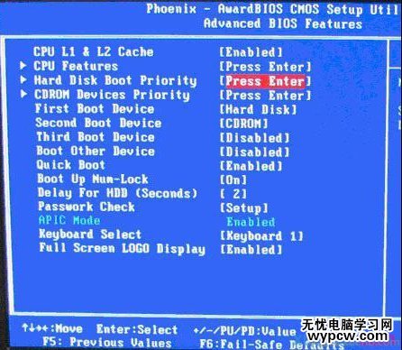 上圖2:高級(jí)BIOS設(shè)置(Advanced BIOS Features)界面,首先選擇硬盤啟動(dòng)優(yōu)先級(jí):Hard Disk Boot Priority