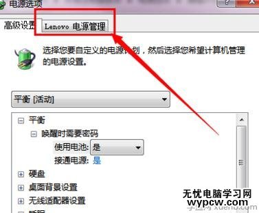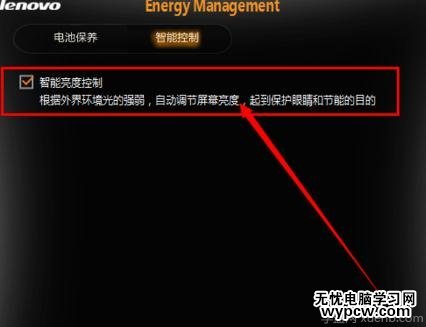 在接下來彈出的界面中,我們的直接點擊右側的“Lenovo電源管理”選項,當然前提是你安裝了聯想電源管理軟件,但是如果你不安裝該軟件的話是不會實現亮度隨光線的改變而改變這個功能的。
