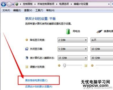 接下來,在彈出的界面中點擊“更改電源高級設置”選項,進入高級電源設置選項,在Windows8系統中可能操作略有改變。