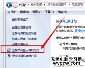 進入電源管理界面以后,點擊界面最左側的“選擇關閉顯示器的時間”選項,進入該選項設置。