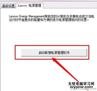 在接下來彈出的界面中,我們點擊“啟動聯想電源管理軟件”,如果你的電腦系統中聯想電源管理軟件默認在系統托盤中有圖標顯示,可以直接點擊進入聯想電源管理軟件。