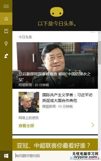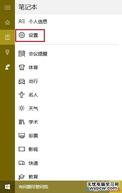 1、點擊Cortana搜索欄,在左邊欄選擇第二個圖標“筆記本”,如下圖——