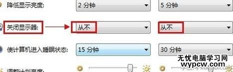 最后選擇“關(guān)閉顯示器”,后兩項(xiàng)都往下拉改成“從不”,就可以了。