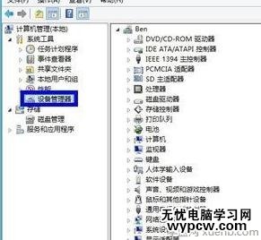 接下來在計算機管理界面的左窗格選擇“設備管理器”選項,如圖所示